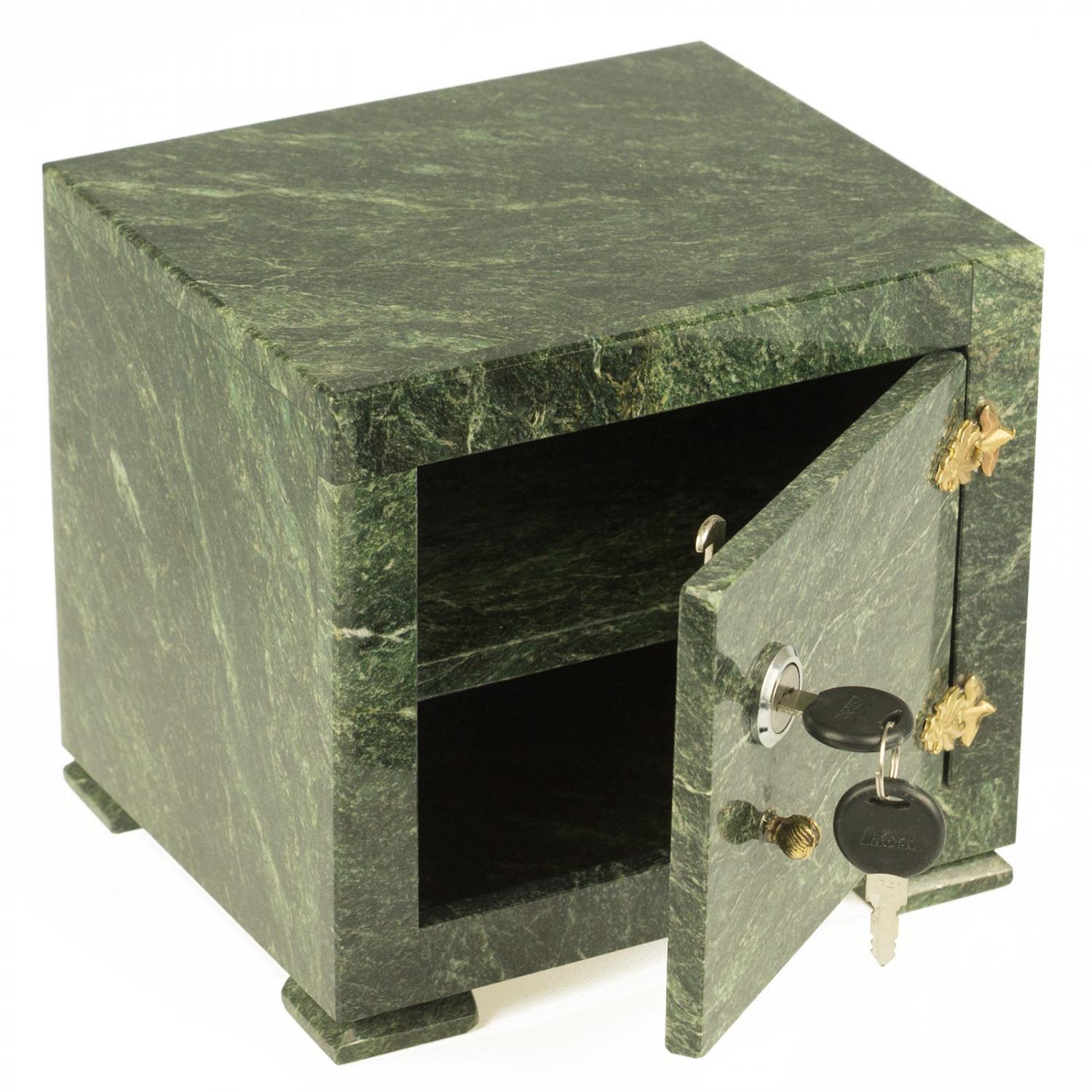 Сейф изготовлен вручную из натурального камня, каждое изделие имеет индивидуальный оттенок и рисунок. Допускается наличие прожилок и внутренних трещин в камне, размеры могут немного отличаться.